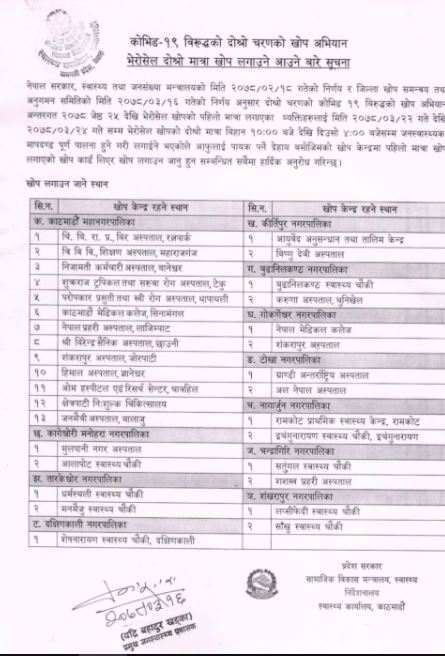 गृहपृष्ठ ∕ समाचार ∕ २२ असारबाट भेरोसेलको दोस्रो खोप दिइँदै २२ असारबाट भेरोसेलको दोस्रो खोप दिइँदै हेल्थ आवाज बुधबार, २०७८ असार १६ गते, २०:५३ मा प्रकाशित काठमाडौं – स्वास्थ्य कार्यालय काठमाडौंले कोभिड-१९ विरुद्धको चिनियाँ खोप भेरोसेलको दोस्रो डोज लगाउने मिति तय गरेको छ। कार्यालयले बुधबार सूचना जारी गर्दै भेरोसेलको दोस्रो डोज २२ गतेबाट लगाउने तय भएको जनाएको हो। खोप लगाउने केन्द्रहरु काठमाडौंका विभिन्न स्थानीय तहहरुमा तोकिएको छ। गत २५ जेठगतेदेखि २९ गतेसम्म देशभर ६० देखि ६४ वर्ष उमेर समूहका नागारिकलाई भेरोसेलको पहिलो मात्रा खोप लगाएको थियो। सोही समूहलाई दोस्रो डोज दिन लागिएको हो। क्याटेगोरी : समाचार तपाईको प्रतिक्रिया दिनुहोस सम्बन्धित समाचार स्वास्थ्य क्षेत्र सुधारका लागि दुई वर्षअघि रास्वपाले बुझाएको २६ बुँदे… शहीद दशरथ चन्द स्वास्थ्य विज्ञान विश्वविद्यालयको सिनेट बैठक पहिलो पटक… हेलो सरकारबाट प्राप्त गुनासो सम्बोधनका लागि फोकल पर्सन तोक्न ४६… भरतपुर अस्पतालको मेसुमा डा. विश्वबन्धु बगाले नियुक्त कार्यालय समयमा अनुपस्थित रहने कर्मचारीलाई तह लगाउन वीर अस्पताल व्यवस्थापनका… नवौं र दशौं तहका १४ जना विशेषज्ञ चिकित्सकको काज फिर्ता धेरै पढिएका १ नेपाल हियरिङ एण्ड स्पीच क्लिनिकमार्फत ४० वर्षीय पुरुषोत्तम भुर्तेलको व्यवसायिक उडान २ सरकारी जागिरे डा. रोशन पिजीका इन्ट्रान्स टपर ३ रोबोटिक सर्जरी क्यान्सर उपचारको नयाँ विकल्प : विज्ञ ४ गर्भपतन गर्दा के कुरामा ध्यान दिने ? गर्भपतनपछि आउन सक्छन् यस्ता जटिलता ५ ४ अर्ब लगानीमा बनेको ३०० शय्याको सन्जीवनी टिचिङ हस्पिटल माघ मसान्तबाट सञ्चालनमा आउने ६ बालबालिकामा देखिने दन्त सडनः अर्ली चाइल्डहुड केरिज ७ ३८ वर्षीया निशा मेहता स्वास्थ्य तथा जनसंख्यामन्त्री नियुक्त TFN ट्रेण्डिङ सुरक्षित यौन व्यवहारको महत्त्व बुझाउन यौन सन्तुष्टिबारे शिक्षा दिन आवश्यक : डब्लुएचओ बेलायतमा कोभिड-१९ को नयाँ भेरियन्ट एरीसको खतरा भारतमा डिम्ड युनिभर्सिटीअन्तर्गतका कलेजमा एमबीबीएसका ४५० सिट खाली गाँजाको अस्पतालमा भीषण हमला, ५०० बढीको मृत्यु आईभीएफ के हो ? आईभीएफ दिवस किन मनाइन्छ ? एएमएसपी सम्बन्धि दुई दिने कार्यशाला गोष्ठी सम्पन्न Tobacco Act of Nepal: A mockery of the law पुरुषमा प्रजनन क्षमता बढाउन के सेवन गर्ने ? सुरक्षित यौन व्यवहारको महत्त्व बुझाउन यौन सन्तुष्टिबारे शिक्षा दिन आवश्यक : डब्लुएचओ बेलायतमा कोभिड-१९ को नयाँ भेरियन्ट एरीसको खतरा भारतमा डिम्ड युनिभर्सिटीअन्तर्गतका कलेजमा एमबीबीएसका ४५० सिट खाली गाँजाको अस्पतालमा भीषण हमला, ५०० बढीको मृत्यु आईभीएफ के हो ? आईभीएफ दिवस किन मनाइन्छ ? एएमएसपी सम्बन्धि दुई दिने कार्यशाल