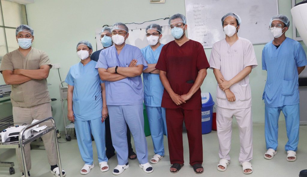 गृहपृष्ठ ∕ समाचार ∕ केएमसीले ‘रोबटिक सर्जरी’ सेवा सुरु गर्दै केएमसीले ‘रोबटिक सर्जरी’ सेवा सुरु गर्दै हेल्थ आवाज बिहीबार, २०७८ साउन २१ गते, १६:१२ मा प्रकाशित तस्बिर : नवराज वाग्ले/हेल्थआवाज काठमाडौं – काठमाडौं मेडिकल कलेज (केएमसी)ले ‘रोबटिक सर्जरी’ सुरु गर्ने भएको छ। बिहिबार पत्रकार सम्मेलन आयोजना गरी अस्पतालले उक्त जानकारी दिएको हो। नेपालमै पहिलोपटक न्यूरो सर्जरीका लागि कार्नियल रोबर्ट भित्र्याइएको अस्पतालले जानकारी दिएको छ। अस्पतालका अनुसार नेभीजिएसन सिस्टम विथ रोबर्ट, न्यूरो मोनिटरिङ्ग् सिस्टम, मिनिमल इन्भेसिभ स्पाइन सर्जरी इक्युपमेन्ट जस्ता अत्याधुनिक उपकरणहरु जडान भैसकेको छ। एडभान्स न्यूरोसाइनसेन्स सेन्टरका निर्देशक तथा वरिष्ठ न्यूरो सर्जन डा. अमित थापाको नेतृत्वमा दक्ष जनशक्ति सहितको न्यूरो सर्जरी सेवा सुरु भएको हो। उक्त सेवा सुरु भएपछि न्यूरो सर्जरीको क्षेत्रमा सहज, सुलभ र गुणस्तरीय सेवाको नयाँ आयामको सुरुवात भएको अस्पतालले जनाएको छ। तस्बिरहरु :- नवराज वाग्ले /हेल्थआवाज क्याटेगोरी : समाचार तपाईको प्रतिक्रिया दिनुहोस सम्बन्धित समाचार सुदूरपश्चिममा १०० शय्याका ६ निजी अस्पताल, २ निजी अस्पताल स्वीकृतीका… स्वास्थ्य क्षेत्र सुधारका लागि दुई वर्षअघि रास्वपाले बुझाएको २६ बुँदे… शहीद दशरथ चन्द स्वास्थ्य विज्ञान विश्वविद्यालयको सिनेट बैठक पहिलो पटक… हेलो सरकारबाट प्राप्त गुनासो सम्बोधनका लागि फोकल पर्सन तोक्न ४६… भरतपुर अस्पतालको मेसुमा डा. विश्वबन्धु बगाले नियुक्त कार्यालय समयमा अनुपस्थित रहने कर्मचारीलाई तह लगाउन वीर अस्पताल व्यवस्थापनका… धेरै पढिएका १ नेपाल हियरिङ एण्ड स्पीच क्लिनिकमार्फत ४० वर्षीय पुरुषोत्तम भुर्तेलको व्यवसायिक उडान २ सरकारी जागिरे डा. रोशन पिजीका इन्ट्रान्स टपर ३ गर्भपतन गर्दा के कुरामा ध्यान दिने ? गर्भपतनपछि आउन सक्छन् यस्ता जटिलता ४ रोबोटिक सर्जरी क्यान्सर उपचारको नयाँ विकल्प : विज्ञ ५ ३८ वर्षीया निशा मेहता स्वास्थ्य तथा जनसंख्यामन्त्री नियुक्त ६ एएमएसपी सम्बन्धि दुई दिने कार्यशाला गोष्ठी सम्पन्न ७ ३८ वर्षीया निशा मेहता स्वास्थ्य तथा जनसंख्यामन्त्री बन्दै TFN ट्रेण्डिङ कार्यालय समयमा अनुपस्थित रहने कर्मचारीलाई तह लगाउन वीर अस्पताल व्यवस्थापनका एक दर्जन बढी निर्णय नेपाल हियरिङ एण्ड स्पीच क्लिनिकमार्फत ४० वर्षीय पुरुषोत्तम भुर्तेलको व्यवसायिक उडान छोरीको साहसले बुवालाई दियो नयाँ जीवन स्वास्थ्य क्षेत्र सुधारका लागि दुई वर्षअघि रास्वपाले बुझाएको २६ बुँदे अवधारणा : सरकारलाई कार्यान्वय गर्ने अवसर हेलो सरकारबाट प्राप्त गुनासो सम्बोधनका लागि फोकल पर्सन तोक्न ४६ निकायलाई स्वास्थ्य