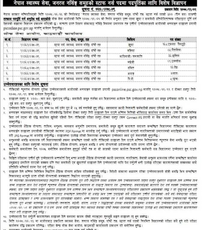 गृहपृष्ठ ∕ समाचार ∕ लोकसेवाले खोल्यो ३ सय स्टाफ नर्सका लागि विज्ञापन लोकसेवाले खोल्यो ३ सय स्टाफ नर्सका लागि विज्ञापन हेल्थ आवाज बुधबार, २०७८ चैत्र २ गते, ०८:२१ मा प्रकाशित काठमाडौँ- लोकसेवा आयोगले ३ सय जना स्टाफ नर्स स्थायी पदपूर्ति गर्न विशेष विज्ञापन गरेको छ । मंगलबार बसेको आयोगको बैठकले खुल्ला तथा समावेशी प्रतियोगिताद्धारा ३ सय जना नर्स तत्काल स्थायी पदपूर्ति गर्नुपर्ने भन्दै विशेष विज्ञापन गरेको हो । विज्ञापनमा अनलाइन दरखास्त हाल्ने म्याद २२ चैतसम्म र दोब्बर दस्तुर तिरी दरखास्त हाल्ने म्याद २९ चैतसम्म तोकिएको छ । क्याटेगोरी : समाचार तपाईको प्रतिक्रिया दिनुहोस सम्बन्धित समाचार निःशुल्क वितरण गरिने औषधि स्वदेशमै उत्पादन गर्नेबारे छलफल सुदूरपश्चिममा १०० शय्याका ६ निजी अस्पताल, २ निजी अस्पताल स्वीकृतीका… स्वास्थ्य क्षेत्र सुधारका लागि दुई वर्षअघि रास्वपाले बुझाएको २६ बुँदे… शहीद दशरथ चन्द स्वास्थ्य विज्ञान विश्वविद्यालयको सिनेट बैठक पहिलो पटक… हेलो सरकारबाट प्राप्त गुनासो सम्बोधनका लागि फोकल पर्सन तोक्न ४६… भरतपुर अस्पतालको मेसुमा डा. विश्वबन्धु बगाले नियुक्त धेरै पढिएका १ नेपाल हियरिङ एण्ड स्पीच क्लिनिकमार्फत ४० वर्षीय पुरुषोत्तम भुर्तेलको व्यवसायिक उडान २ सरकारी जागिरे डा. रोशन पिजीका इन्ट्रान्स टपर ३ गर्भपतन गर्दा के कुरामा ध्यान दिने ? गर्भपतनपछि आउन सक्छन् यस्ता जटिलता ४ रोबोटिक सर्जरी क्यान्सर उपचारको नयाँ विकल्प : विज्ञ ५ ३८ वर्षीया निशा मेहता स्वास्थ्य तथा जनसंख्यामन्त्री नियुक्त ६ एएमएसपी सम्बन्धि दुई दिने कार्यशाला गोष्ठी सम्पन्न ७ ३८ वर्षीया निशा मेहता स्वास्थ्य तथा जनसंख्यामन्त्री बन्दै TFN ट्रेण्डिङ नेपाल हियरिङ एण्ड स्पीच क्लिनिकमार्फत ४० वर्षीय पुरुषोत्तम भुर्तेलको व्यवसायिक उडान छोरीको साहसले बुवालाई दियो नयाँ जीवन कार्यालय समयमा अनुपस्थित रहने कर्मचारीलाई तह लगाउन वीर अस्पताल व्यवस्थापनका एक दर्जन बढी निर्णय हेलो सरकारबाट प्राप्त गुनासो सम्बोधनका लागि फोकल पर्सन तोक्न ४६ निकायलाई स्वास्थ्य मन्त्रालयको परिपत्र स्वास्थ्य क्षेत्र सुधारका लागि दुई वर्षअघि रास्वपाले बुझाएको २६ बुँदे अवधारणा : सरकारलाई कार्यान्वय गर्ने अवसर शहीद दशरथ चन्द स्वास्थ्य विज्ञान विश्वविद्यालयको सिनेट बैठक पहिलो पटक गेटामा बस्ने एएमएसपी सम्बन्धि दुई दिने कार्यशाला गोष्ठी सम्पन्न सरकारी जागिरे डा. रोशन पिजीका इन्ट्रान्स टपर नेपाल हियरिङ एण्ड स्पीच क्लिनिकमार्फत ४० वर्षीय पुरुषोत्तम भुर्तेलको व्यवसायिक उडान छोरीको साहसले बुवालाई दियो नयाँ जीवन कार्यालय समयमा अनुपस्थित रहने कर्मचारीलाई तह लगाउन वीर अस्पताल व्