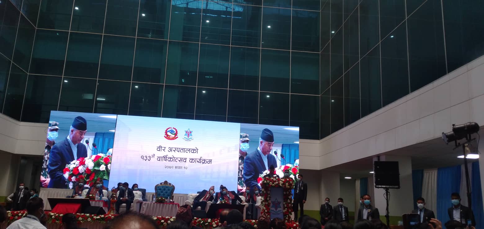 गृहपृष्ठ ∕ समाचार ∕ वीर अस्पतालको सेवा गुणस्तरीय बनाउनेमा सरकार प्रतिवद्ध : प्रधानमन्त्री देउवा वीर अस्पतालको सेवा गुणस्तरीय बनाउनेमा सरकार प्रतिवद्ध : प्रधानमन्त्री देउवा हेल्थ आवाज बिहीबार, २०७९ साउन १२ गते, १२:०६ मा प्रकाशित काठमाडौँ – प्रधानमन्त्री शेरबहादुर देउवाले वीर अस्पतालको सेवा गुणस्तरीय बनाउन सरकार प्रतिवद्ध रहेको बताएका छन् । बिहिबार अस्पताल परिसरमा आयोजित अस्पतालको १ सय ३३ औं वार्षिकोत्सव कार्यक्रममा बोल्दै प्रधानमन्त्री देउवाले स्वास्थ्य क्षेत्रमा सरकार संवेदनशील रहेको हुँदा अस्पतालको सेवा गुणस्तरीय बनाउन सरकार प्रतिवद्ध रहेको बताएका हुन् । ‘स्वास्थ्य क्षेत्रमा सरकार संवेदनशील छ। वीर अस्पतालले बढीभन्दा बढी जनतालाई सेवा दिनेछ भन्नेमा दृढ विश्वास लिएको छु। सरकारले पनि यसमा सक्दो सहयोग गर्नेछ,’ उनले भने। प्रधानमन्त्री देउवाले दुवाकोटमा वीर अस्पतालको विस्तार हुने बताउँदै यसको लागि बजेट छुट्याउन र अस्पतालमा जनशक्ति थप्न स्वास्थ्यमन्त्री भावनी खापुङलाई निर्देशन दिएका छन्। गुणस्तरीय स्वास्थ्य सेवा नागरिकको आवश्यकता रहेको उल्लेख गर्दै प्रधानमन्त्री देउवाले दुर्गममा पनि स्वास्थ्य सेवा पु-याउन सरकार प्रयत्नशील रहेको बताएका छन्। अस्पतालले क्यान्सरलगायतका घातक रोग उपचार सेवामा ध्यान दिनुपर्ने देखिएको उनको भनाइ छ। क्याटेगोरी : समाचार तपाईको प्रतिक्रिया दिनुहोस सम्बन्धित समाचार कानुन विपरित काम गर्ने महानिर्देशकलाई बोकेर जेन-जी मन्त्रीको सुशासन यात्रा स्वास्थ्य सेवा विभागको महानिर्देशकमा डा. ढकाल नियुक्त नारायणमान विजुक्छेसँग जर्मन चिकित्सक टोलीको भेटवार्ता कलेजो प्रत्यारोपण सर्जन प्रा.डा. भण्डारीले तताए एलओडीको सांगीतिक माहोल निजी अस्पतालमा ठेक्का प्रथा रोक्ने स्वास्थ्यमन्त्रीको प्रतिबद्धता जेन-जी प्रदर्शनका घाइतेको वर्गीकरण गरिदैं, प्रमुख जिल्ला अधिकारीको नेतृत्वमा समिति धेरै पढिएका १ भैरहवामा ‘एडभान्स इन्टरनेशनल हस्पिटल’ बैशाखबाट औपचारिक रुपमा सञ्चालनमा आउने २ अघि बढ्यो सुर्खेत मेडिकल कलेज निर्माण प्रक्रिया ३ एलओडीमा गुन्जिदैंछन् कलेजो प्रत्यारोपण सर्जन प्रा. डा. रमेशसिंह भण्डारी ४ स्वास्थ्य बीमा बोर्ड, कान्ति, गेटा, डडेल्धुरा र सुशील कोइराला प्रखर क्यान्सर अस्पतालका लागि २५६ दरबन्दी स्वीकृत ५ भीम अस्पतालको मेसुमा डा. वर्षा थापा नियुक्त ६ निजी अस्पतालमा ठेक्का प्रथा रोक्ने स्वास्थ्यमन्त्रीको प्रतिबद्धता ७ एमबीबीएसको एकीकृत प्रवेश परीक्षामा ८७७२ जना पास Kalpana Craft ट्रेण्डिङ कानुन विपरित काम गर्ने महानिर्देशकलाई बोकेर जेन-जी मन्त्रीको सुशासन यात्रा सिभिल अस्पतालले माग्यो १० औं तहका 