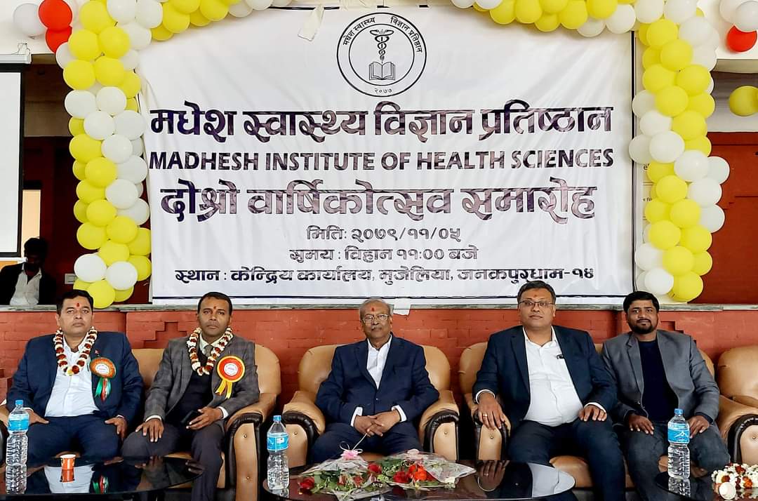 काठमाडौं—मधेस स्वास्थ्य विज्ञान प्रतिष्ठानले दोस्रो वार्षिकोत्सव मनाएको छ । शुक्रबार दोस्रो वार्षिकोत्सव मनाउँदैं गर्दा दुई वर्षमै प्राप्त गरेको शैक्षिक उपलब्धिलाई सन्तोषजनक मान्न सकिन्छ ।