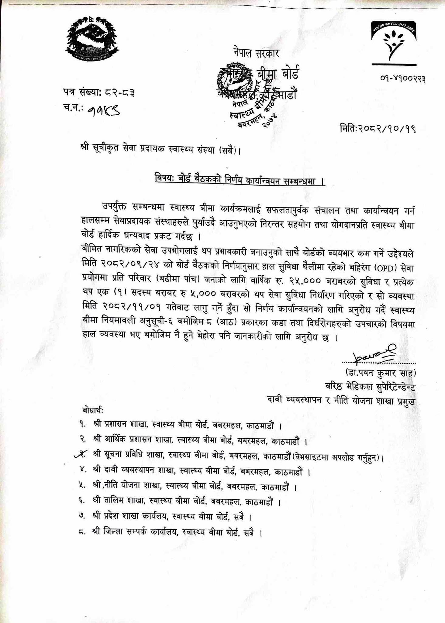 गृहपृष्ठ ∕ समाचार ∕ १ फागुनबाट स्वास्थ्य बीमामार्फत उपचार गर्दा ओपीडीमा २५ हजारभन्दा बढी खर्च गर्न नपाइने १ फागुनबाट स्वास्थ्य बीमामार्फत उपचार गर्दा ओपीडीमा २५ हजारभन्दा बढी खर्च गर्न नपाइने हेल्थ आवाज सोमबार, २०८२ माघ १९ गते, १६:५७ मा प्रकाशित तस्विरः नवराज वाग्ले/हेल्थआवाज काठमाडौं—स्वास्थ्य बीमा बोर्डले ओपीडीमा उपचार गर्दा २५ हजारभन्दा बढी खर्च गर्न नपाइने निर्णय गरेको छ । २४ पुसमा बसेको बोर्डको बैठकले १ फागुनबाट ओपीडीमा २५ हजार रुपैयाँभन्दा बढी खर्च गर्न नपाइने निर्णय गरेको हो । स्वास्थ्य बीमामा आवद्ध भएका परिवारका पाँच जना सदस्यले २५ हजार रुपैयाँसम्मको ओपीडी सेवा लिन पाउनेछन् । त्यसबाहेक थप एक सदस्य बराबर ५ हजार रुपैयाँ बराबरको सेवा सुविधा निर्धाण गरिएको बोर्डले जनाएको छ । स्वास्थ्य बीमा बोर्डको व्यवभार कम गर्ने उद्देश्यले उक्त निर्णय लिएको जनाएको छ । त्यसबाहेक अन्य ८ प्रकारका कडा दीर्घ रोगको उपचारका विषयमा भने स्वास्थ्य बीमा नियमावली अनुसूची—६ बमोजिम हुने उल्लेख छ । क्याटेगोरी : समाचार तपाईको प्रतिक्रिया दिनुहोस सम्बन्धित समाचार २० माघबाट मेडिकल काउन्सिलको गुड स्ट्याण्डिङ सर्टिफिकेट प्रक्रिया अनलाइनबाट पत्रकार दिनेश सिटौलाको सबअरेनहाइड हेमोरेजका कारण मृत्युः ग्राण्डी अस्पताल एनपीआई नारायणी सामुदायिक अस्पतालको वार्षिक कारोबार ६४ करोड सानिमा र महतोको मेडिकेयर अस्पतालको एक वर्षको कारोबार ५७ करोड… सिटी स्क्यान मेसिन खरिदमा भ्रष्टाचारको आरोपमा राप्तीका तत्कालीन उपकुलपति विरुद्ध… अमेरिकास्थित द म्याक्स फाउण्डेसनको ग्लोबल थिंक ट्यांक सदस्यमा नेपाली अंकोलोजिस्ट… धेरै पढिएका १ नेपालमा भेटिए ९८ हजारभन्दा बढी क्यान्सरका बिरामी २ क्षयरोग पहिचानमा ढिलाइ हुँदा दोलखामा तीन जनाको मृत्यु ३ स्वास्थ्य मन्त्रालयको नीति, योजना तथा अनुगमन महाशाखा प्रमुखमा डा. चुमनलाल दास ४ सिटी स्क्यान मेसिन खरिदमा भ्रष्टाचारको आरोपमा राप्तीका तत्कालीन उपकुलपति विरुद्ध भ्रष्टाचार मुद्धा दायर ५ कोशीका स्वास्थ्यमन्त्रीको ‘पावर’ : डेढ महिनामै उल्टाए कर्मचारीको सरुवा ६ पाठेघरको मुखको क्यान्सरबाट बच्नलाई अपनाउन सकिने उपायहरू ७ ह्याम्स हस्पिटलमा ईएसडी प्रविधिबाट उपचार सुरु TFN ट्रेण्डिङ Young’s lip with tiny bugs: needs awareness of leishmaniasis अमेरिकास्थित द म्याक्स फाउण्डेसनको ग्लोबल थिंक ट्यांक सदस्यमा नेपाली अंकोलोजिस्ट डा. शाही नियुक्त ग्रीनक्रस अस्पतालबाट नवजात शिशु गायब, उपचारमा संलग्न डाक्टर र प्रेमी पक्राउ किन काँप्छ शरीर ? यी हुन् शरीर काप्ने १० कारण नेपालमा भेटिए ९८ हजारभन्दा बढी क्यान्सरका बिरामी ‘बीमा तिरेको छु, जाँच सबै गर्न पाउनु पर्छ’ : अस्पताल ओपीडी