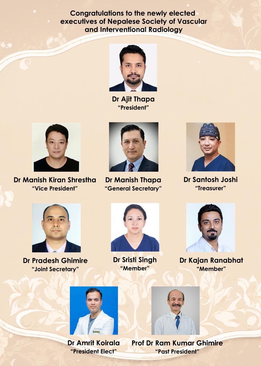 अध्यक्षमा निर्वाचित डा. अजित त्रिवि शिक्षण अस्पताल महाराजगन्जमा वरिष्ठ इन्टरभेन्सनल रेडियोलोजिष्टका रुपमा कार्यरत छन् । यस्तै, सोसाइटीको उपाध्यक्षमा डा. मनिष किरण श्रेष्ठ निर्वाचित भए ।
