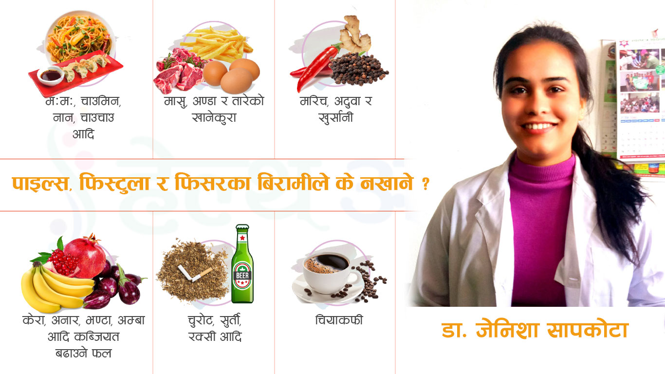 मलद्वार सम्बन्धि माथि उल्लेखित रोगहरूको मुल कारण अव्यवस्थित खानपान र जीवनशैली हो । त्यसैले रोगको उपचारमा खानपानको विशेष भूमिका हुन्छ । रोगीले खान नहुने खानेकुराहरू यसप्रकार छन्ः