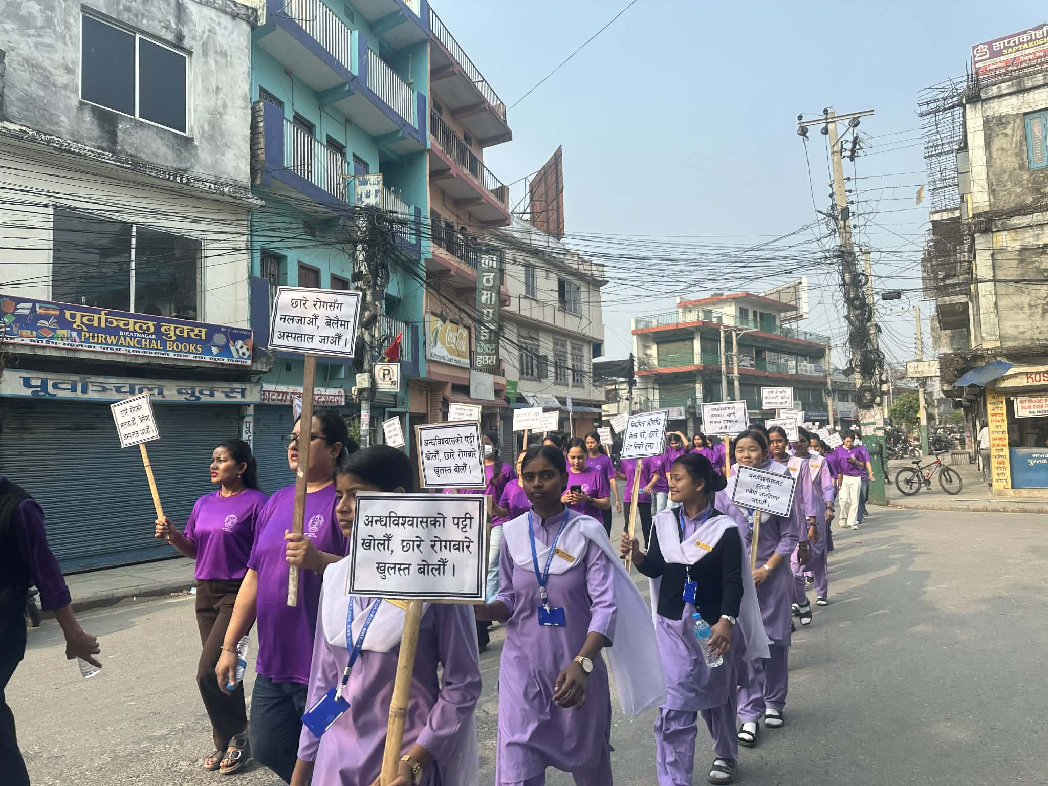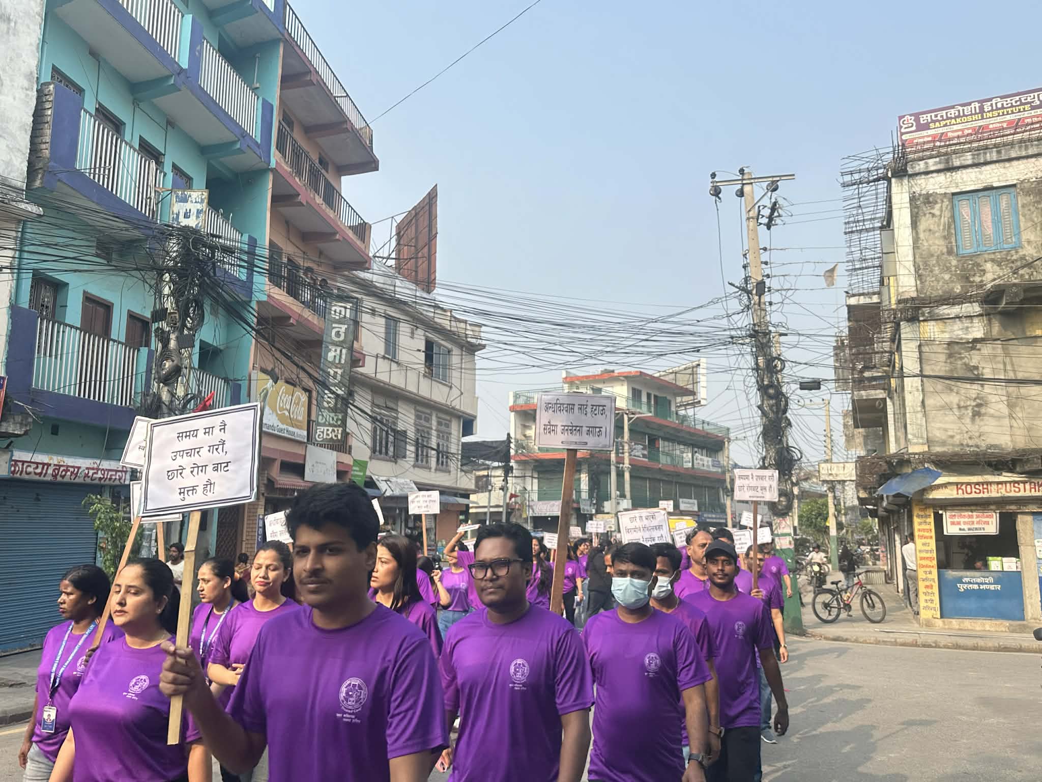 विराटनगर—विराटनगरस्थित न्यूरो हस्पिटलले विश्व छारे रोग दिवसको अवसरमा सचेतनामूलक र्याली आयोजना गरेको छ । बिहीबार बिहान निकालिएको उक्त र्यालीले नगरका विभिन्न भागको परिक्रमा गरी जनचेतना जगाएको हो ।