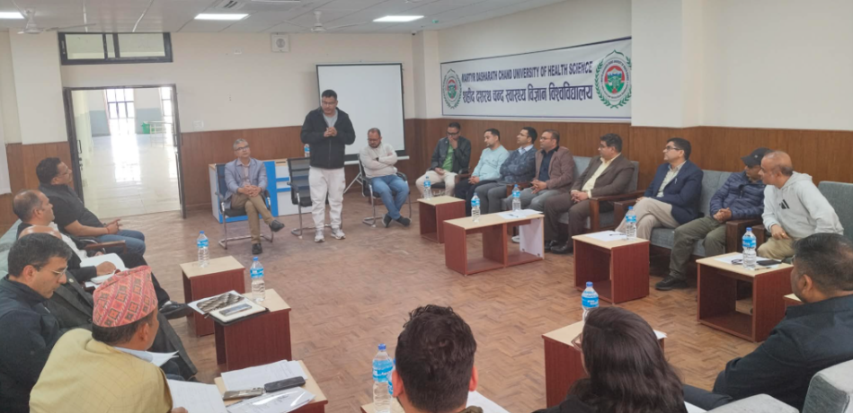 धनगढी—शहीद दशरथ चन्द स्वास्थ्य विज्ञान विश्वविद्यालयले शैक्षिक कार्यक्रम सञ्चालनका विषयमा स्थानीय सरोकारवाला र विज्ञहरूसँग छलफल गरेको छ । शनिबार नेपालकै पहिलो स्वास्थ्य विज्ञान विश्वविद्यालयले आफ्नो कार्यालयमा छलफल कार्यक्रम आयोजना गरेको हो ।